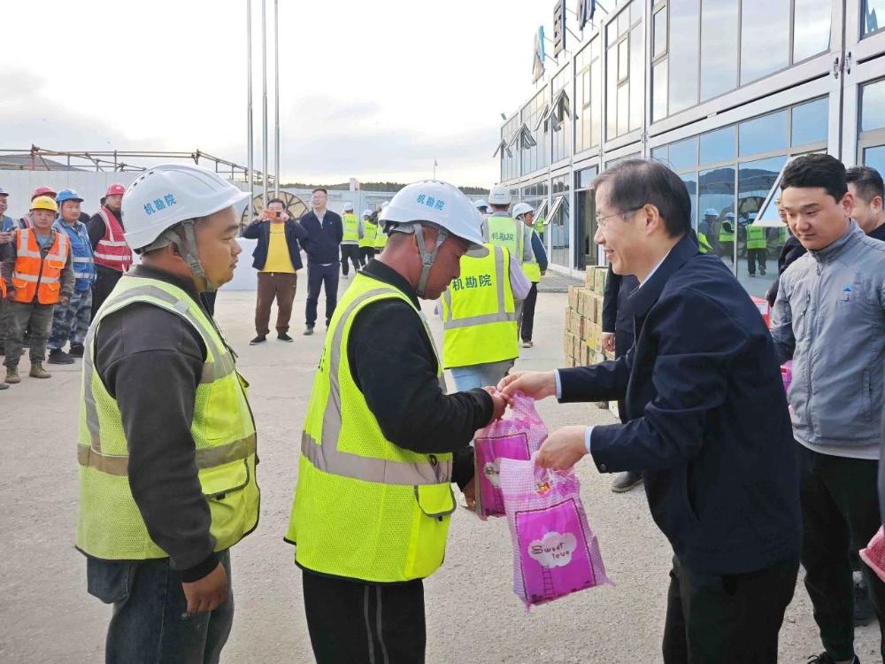 在工地現場,邵雪奎一行代表機勘院向節(jié)日期間堅守一線的全體公司職工和分包方施工人員送上中秋節(jié)慰問,感謝大家的辛勤付出,并致以節(jié)日最親切的問候和最美好的祝愿!