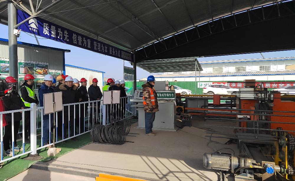 宋勝利一行重點(diǎn)察看了機(jī)勘院鋼筋籠全自動(dòng)智能化生產(chǎn)線作業(yè)情況。該生產(chǎn)線通過(guò)運(yùn)用數(shù)字化控制技術(shù),集成先進(jìn)的大數(shù)據(jù)分析、人工智能算法以及機(jī)器人技術(shù),實(shí)現(xiàn)了生產(chǎn)過(guò)程全自動(dòng)化,大幅提高鋼筋籠制作效率和質(zhì)量,提升現(xiàn)場(chǎng)施工管理水平,為項(xiàng)目順利實(shí)施提供了有力保障。宋勝利在調(diào)研檢查過(guò)程中肯定了機(jī)勘院項(xiàng)目團(tuán)隊(duì)在精細(xì)化管理、項(xiàng)目進(jìn)度控制、工程技術(shù)創(chuàng)新等方面做出的努力。