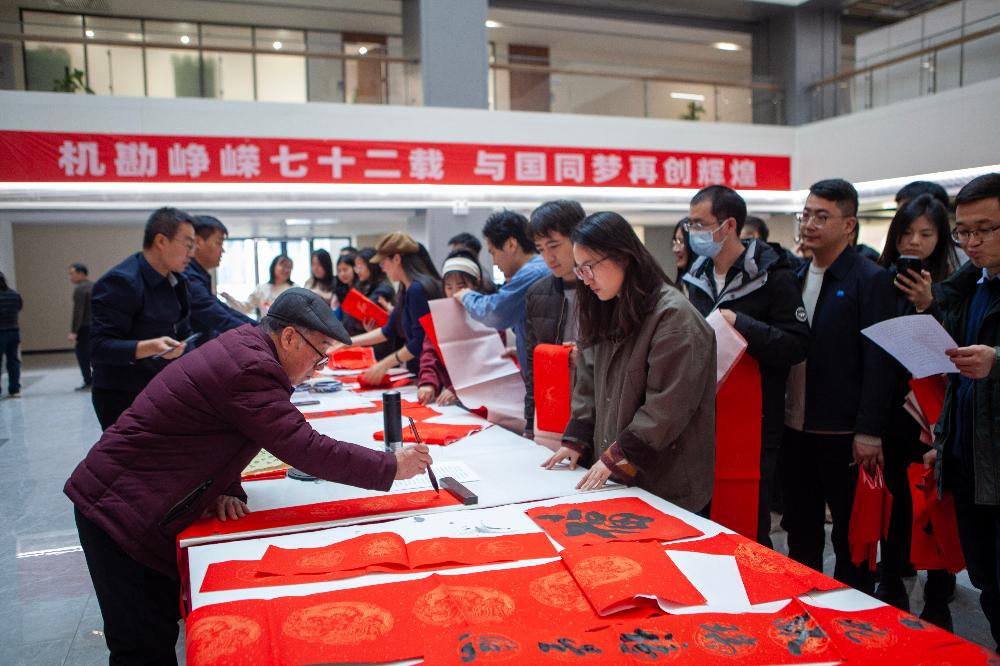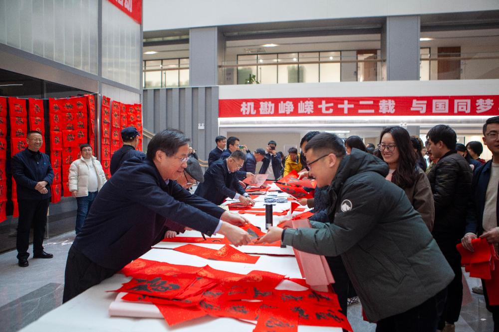 1月20日下午,機勘院在國機集團西部研發中心舉行第七屆“聽黨話?跟黨走?感黨恩”迎新春送春聯暨“送萬福?進萬家”書法公益活動。公司黨委書記、董事長、總經理邵雪奎,財務總監袁煒焱,黨委委員、紀委書記丁寶泉,工會主席王東紅出席活動。