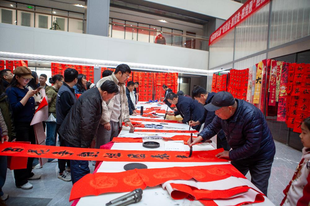 現場氣氛濃厚、熱鬧非凡,紅色春聯悉心鋪開,墨香四溢。書法愛好者們熱情高漲,在揮毫潑墨間,將新年的誠摯祝福訴諸筆端,一個個飽含神韻的“福”字、一副副滿載新春祝福的春聯精彩呈現。職工們接過一句句吉祥如意的新年賀語,既感受了中華傳統文化的魅力,又增添了對新年美好生活的憧憬和向往。活動營造了祥和溫馨的年節氛圍。