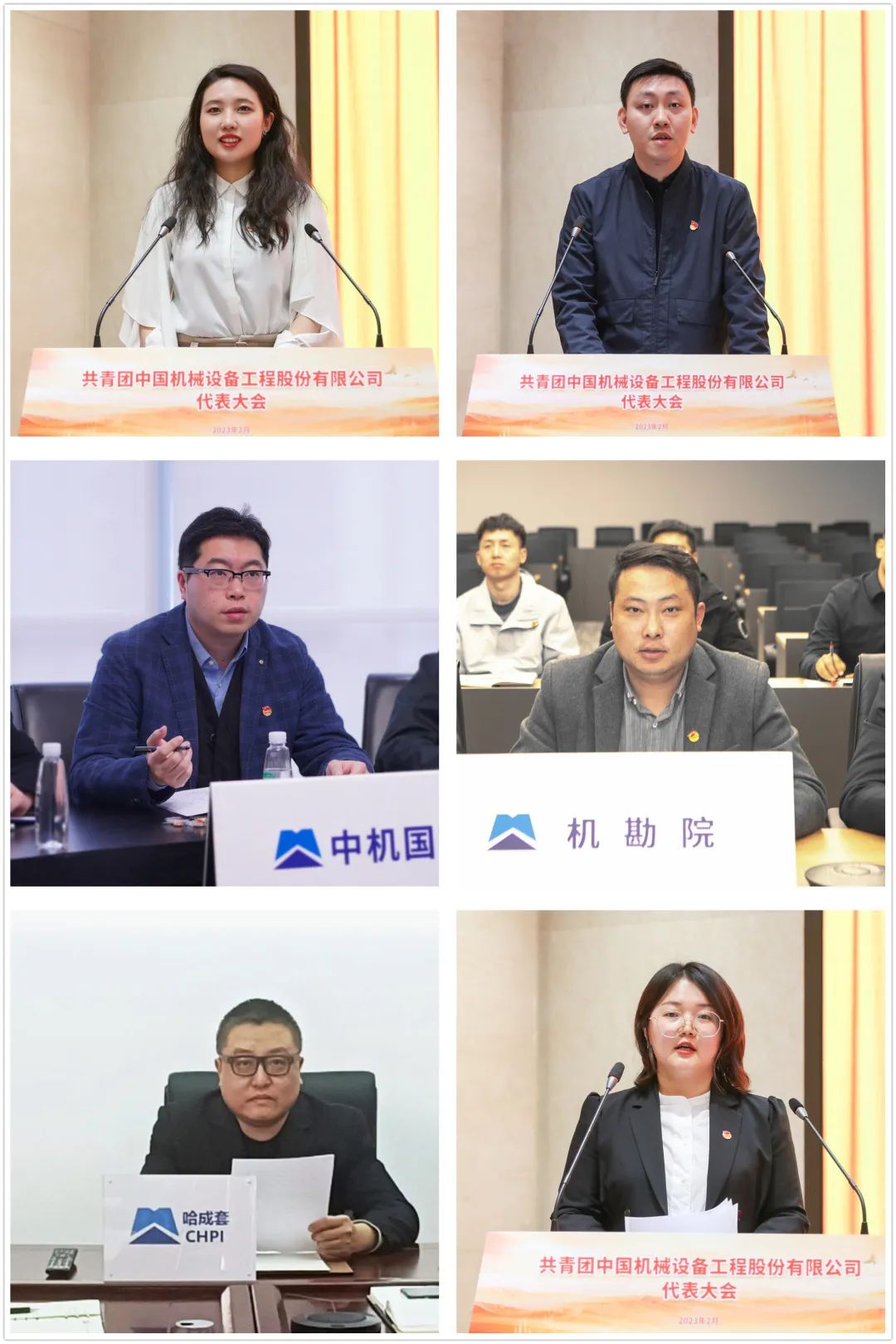 2022年度中設集團本部團青工作排名第一的第一工程成套事業部團支部書記李霈、黨委單位團青工作排名第一的中國電工團委書記楊鑫宇、中機國際設計院團委書記朱慕萱、機勘院團委書記彭衛超、哈成套團總支書記單翔春、中國自控團委書記陳玉珊進行了團青工作經驗分享。