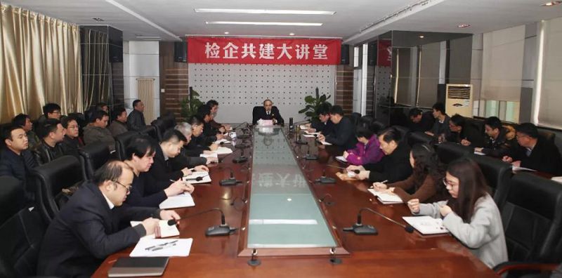 為貫徹落實黨的十九大精神,依法規范企業管理行為, 12月26日上午,院紀委舉辦了第二期“檢企共建大講堂”。特邀檢企共建單位西安市新城區檢察院牟文副檢察長,以《預防職務犯罪,建設廉潔國企》為題,做了一場精彩的專題輔導報告。在院的黨政領導班子成員、中層干部及關鍵崗位工作人員60余人參加了學習。會議由紀委書記、副總經理葉志剛主持。